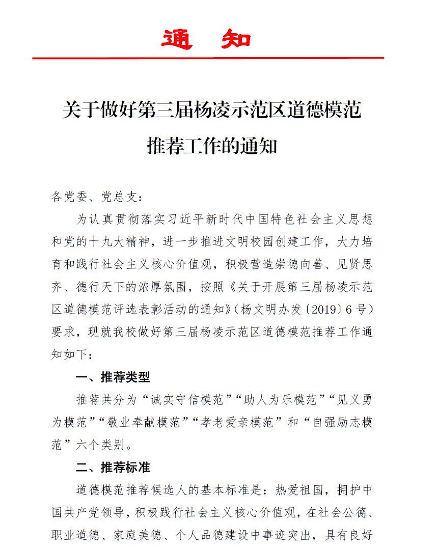 转:关于做好第三届杨凌示范区道德模范推荐工作的通知